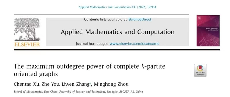 近日,bevictor伟德官网2019级本科生许晨涛、游哲、周明弘和2019级研究生张力文在国际知名期刊APPLIED MATHEMATICS AND COMPUTATION(该期刊连续四年在JCR SCI分区中位列MATHEMATICS, APPLIED - SCIE(Q1),影响因子为4.397)发表了题为The maximum outdegree power of complete k-partite oriented graphs的研究成果。指导老师为林辉球教授。