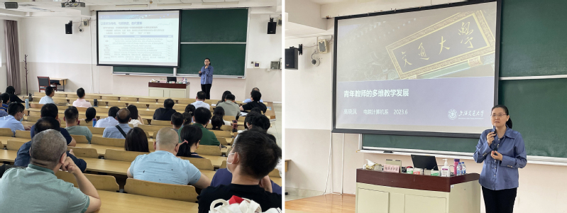 高晓沨从“以人为镜,纵观得失”、“跬步千里,滴水成海”、“北冥有鱼,其名为鲲”三个阶段分享了自己从教期间在教学、科研方面的心得体会和宝贵经验。以《计算机科学导论》课程为例,全方位详细介绍了打造一门精品课程,树立品牌的过程步骤。还从教学技巧、教学竞赛、教学成效、科研实践、人才培养等方面讲述青年教师的教学发展之路。她强调,做好教学工作要沉下心来认真对待每件事,不断反思,不断进取,随着经验和成果的日积月累,教学工作一定能达到更高的水平。