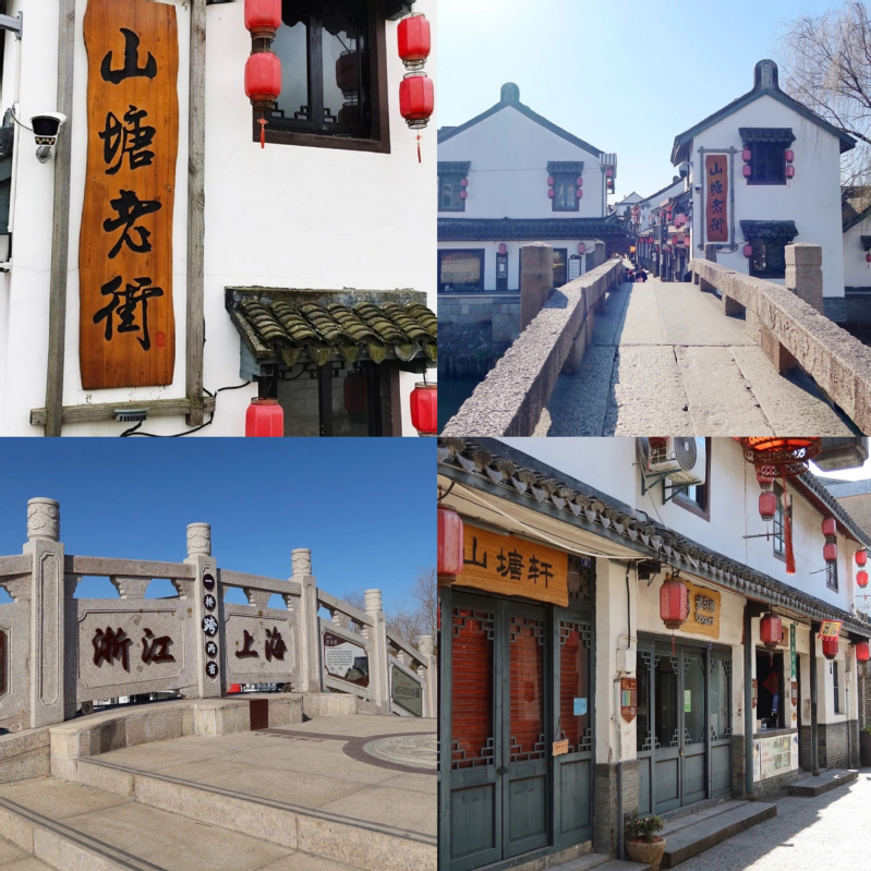 上午,师生们步入横跨沪浙的明月山塘老街。青石板路蜿蜒,红灯笼轻摇,百年山塘桥静卧碧波之上,一桥连两省,一步越古今。这里曾是清顺治年间商贾云集的集市,如今仍留存着江南水乡的温婉风骨。老街两侧,非遗文化与市井烟火交融,沪浙对口美食琳琅满目,老街之外,是新农村建设带来的新机,处处春意盎然。